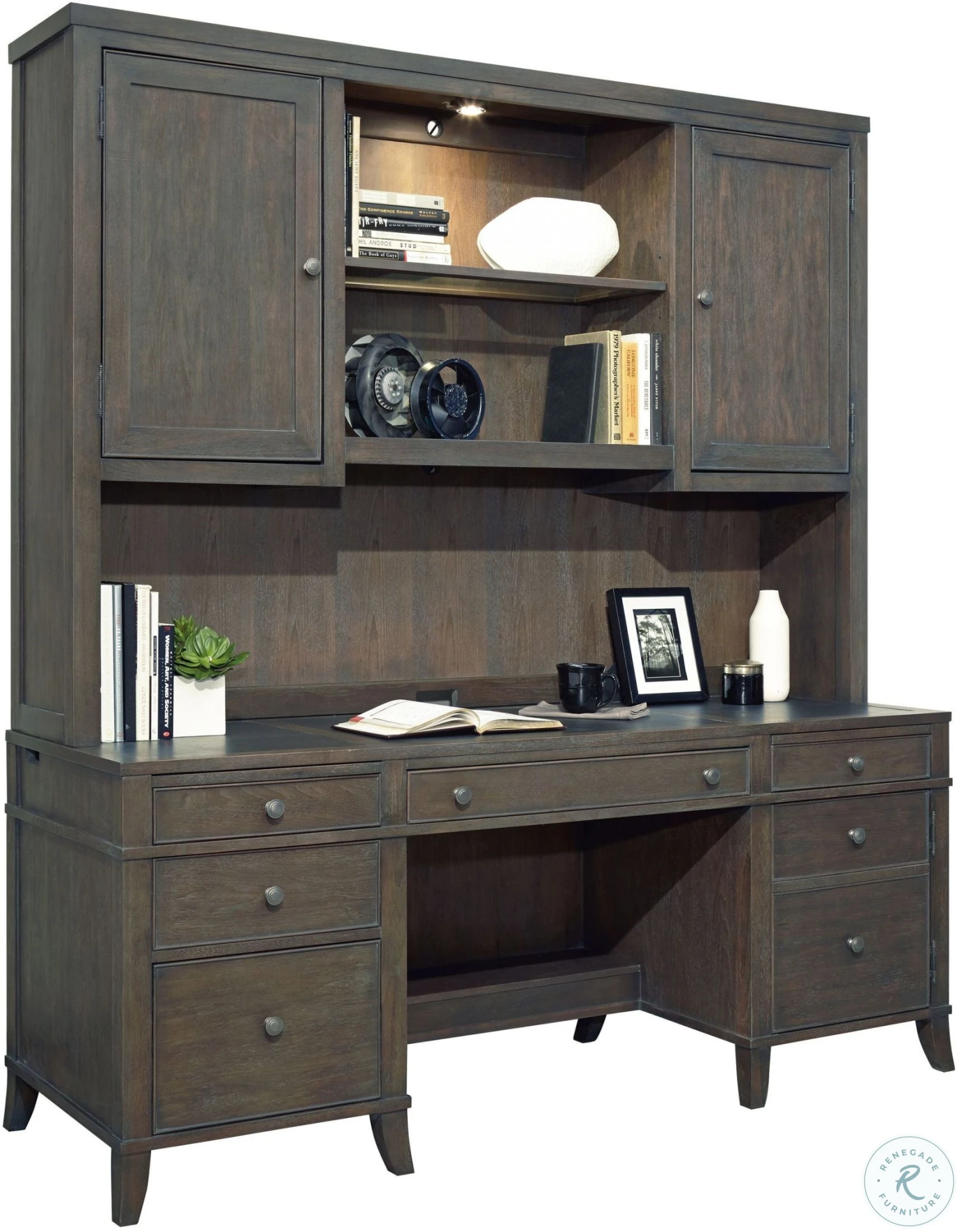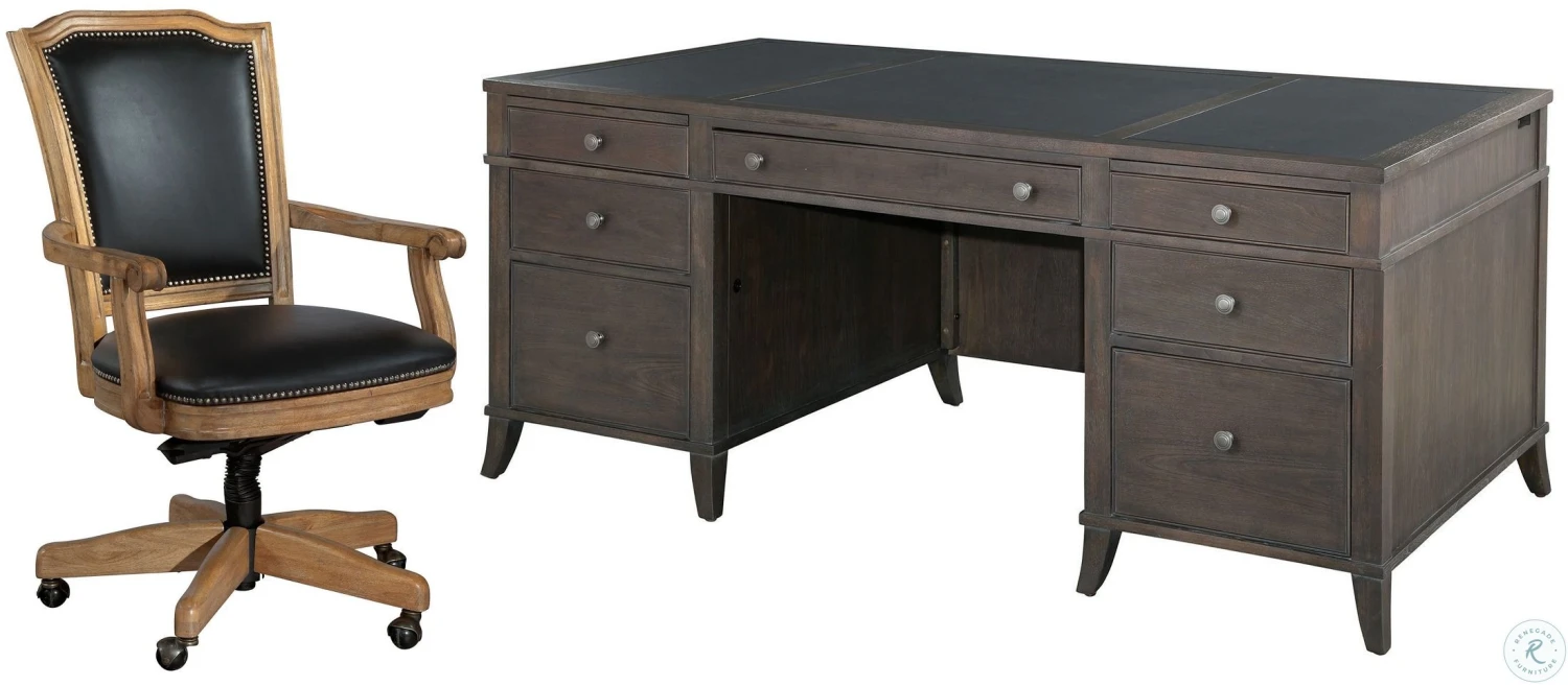 Urban Gray Collection from Hekman. Balance of case is select veneer and solids. Brushed nickel hardware. Urban executive finish.