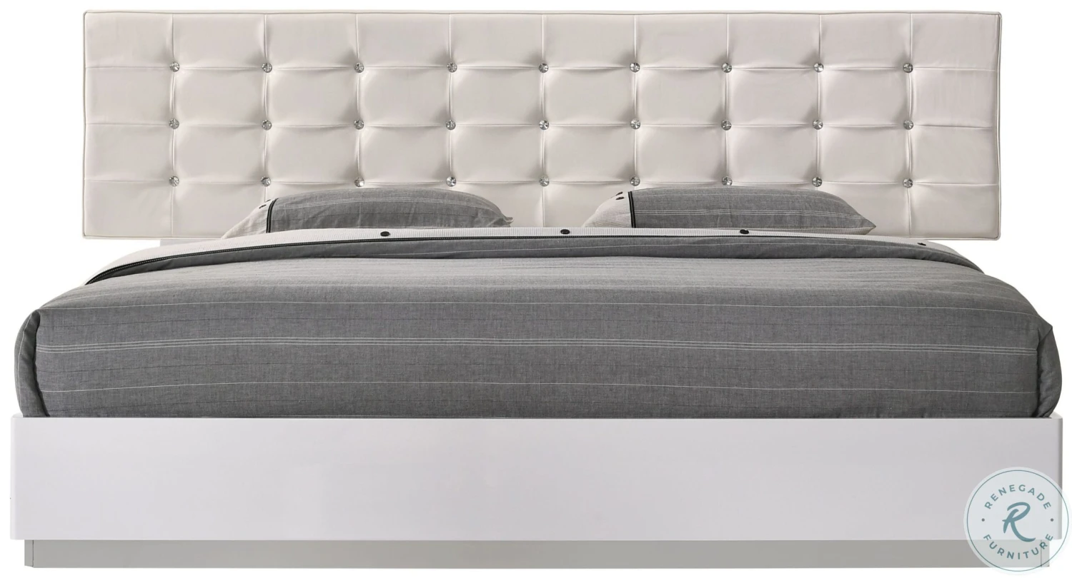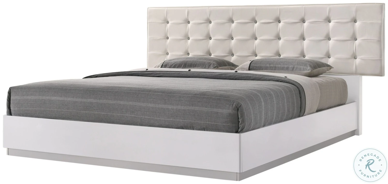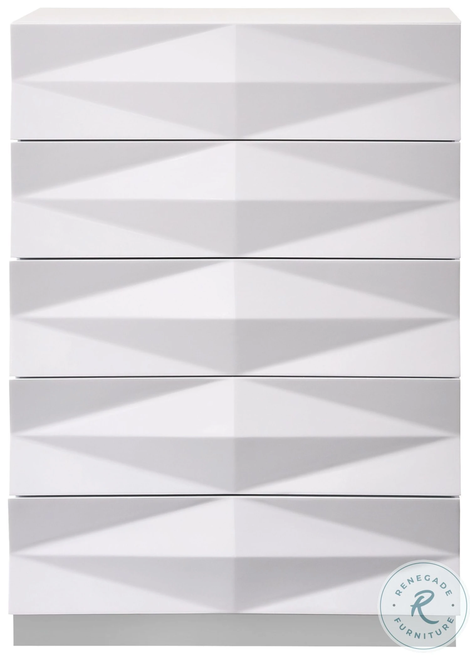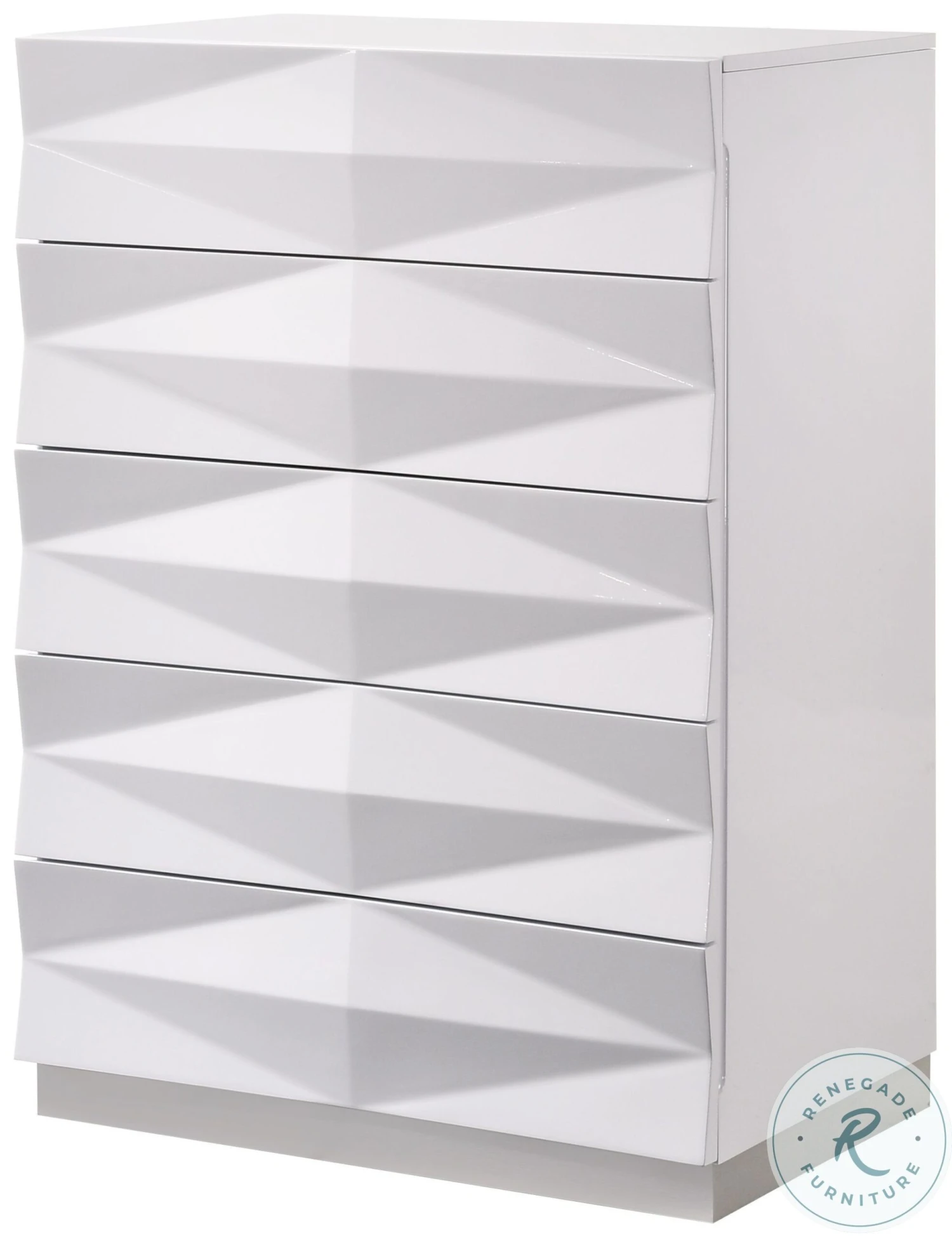 Verona Bedroom by J&M Furniture offers a fresh aim and outlook of the modern bedroom. With case goods featuring unique 3D surfaces, this white lacquered finish set will enhance the look of bedrooms of different sizes and colors. The leatherette headboard provides elegance as well as a classic look to the bedroom set. Whether choosing the entire set, its individual platform bed, or any of the case goods, you can rest assured that this quality furniture is meant to last. Our case goods are equipped with full extension glides.