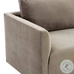 - Taupe velvet upholstery